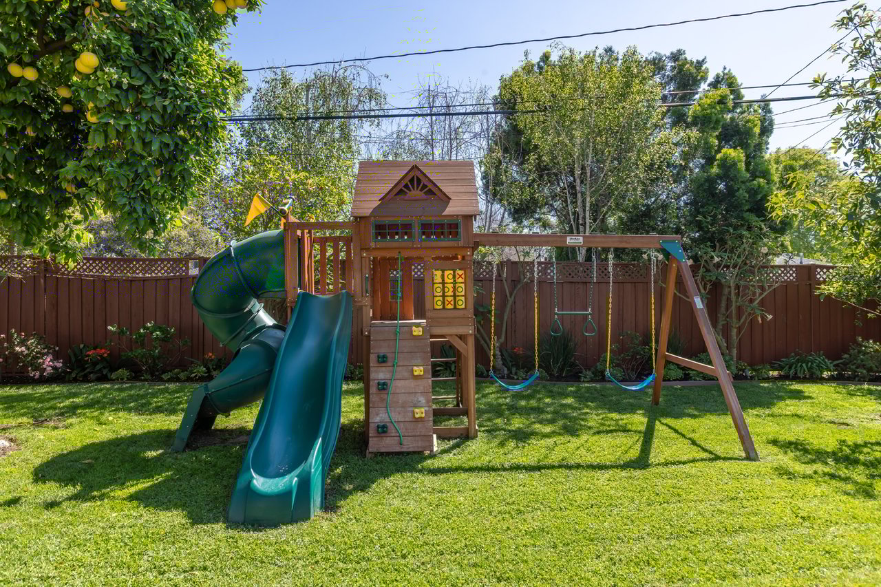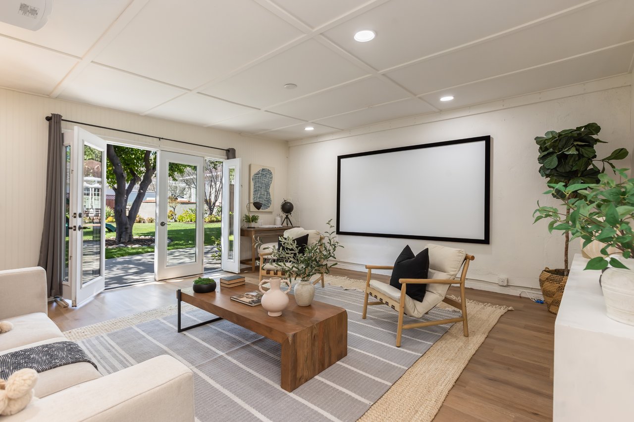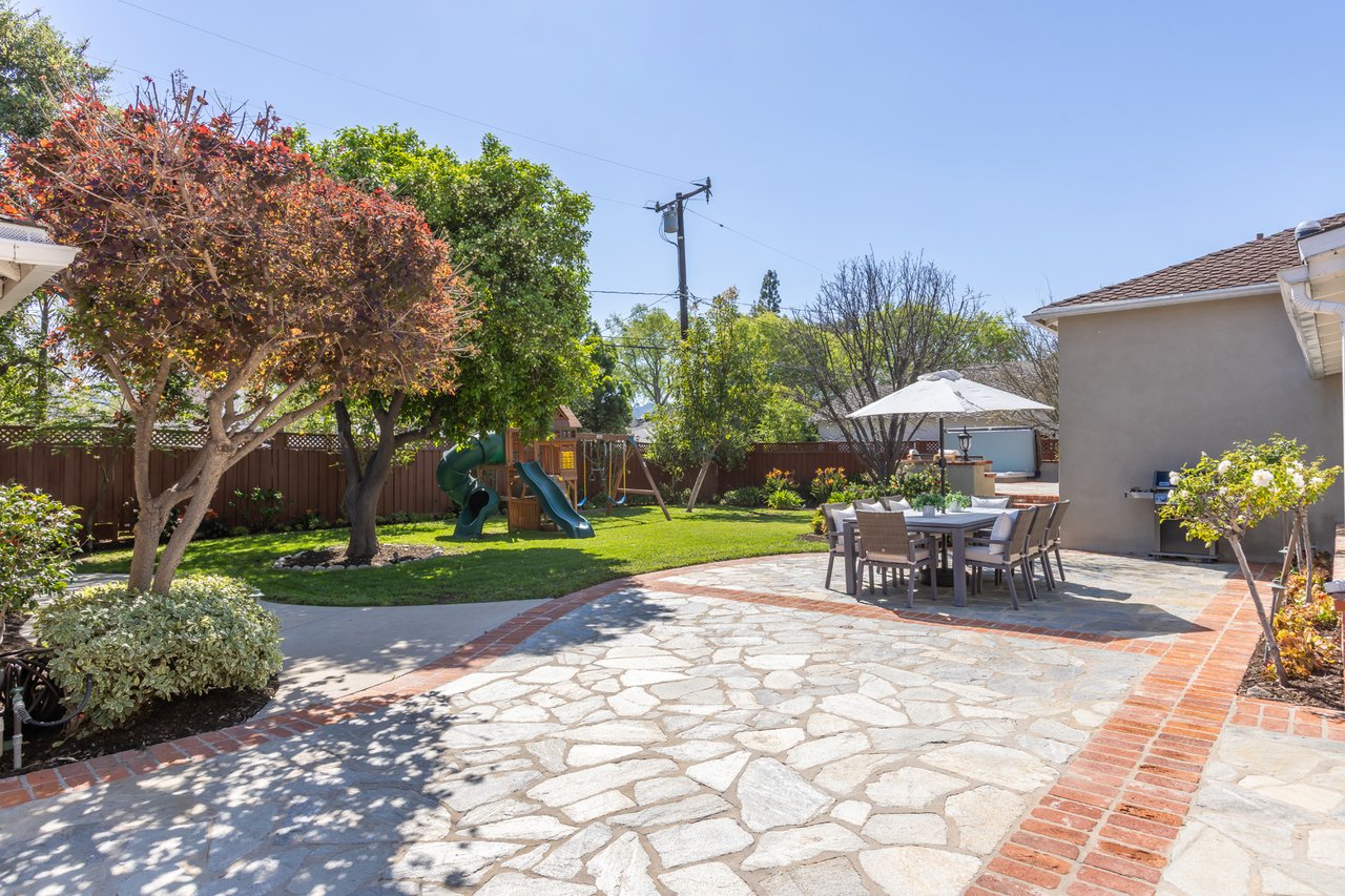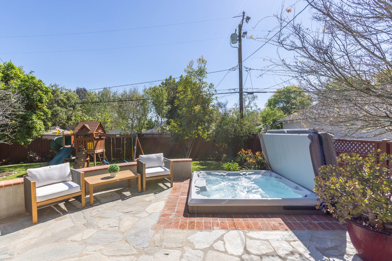 Like a page from a storybook, this traditional home greets you with timeless charm. Shaded canopy trees with an endearing swing, a floral-lined brick walkway, and a quintessential front porch create a first impression that is both warm and unforgettable. Inside, the living room captures peaceful views of the front yard, complemented by French oak wide-plank floors and a fireplace with a wooden mantel and leathered quartz hearth that anchors the space with comfort. Thoughtfully arranged living areas create a natural flow while maintaining a graceful sense of separation between rooms. Soaring vaulted ceilings with exposed beams highlight the bright kitchen, a natural gathering place offering abundant cabinetry, generous counter space, a utility sink, and an oversized leathered quartz island with bar seating, ideal for everyday living and hosting friends and family. Just beyond, a private bedroom wing hosts three well-appointed bedrooms and a shared bath with a glass-enclosed shower and separate tub. The spacious primary suite features French doors that open directly to the patio, where a new spa and tranquil backyard setting create a peaceful retreat. Tucked beneath the closet lies a delightful surprise: a wine cellar designed to house 175 bottles, quietly awaiting its next collection. Completing the suite, the primary bath includes a double vanity, jetted tub, separate shower, and built-in cabinetry. Framed by abundant windows, a gas fireplace and seamless access to the backyard, the sunken family room provides a comfortable space to gather and unwind. Outdoors, a fully fenced private backyard offers multiple seating areas, mature landscaping, fruit trees, and a children's play structure creating a charming setting for classic California afternoons. Versatility continues with a detached Bonus Room (additional 320 SF) featuring new French Doors with sidelights, wood-like flooring, new mini-split A/C unit and projector, well suited for a game room, home office, gym, or creative flex space. In the garage, built-in Craftsman cabinetry, a workshop counter, and durable drainage flooring tiles create a well-equipped space for projects and hobbies. Additional highlights include double-pane windows and recessed lighting throughout, central air and heat, an individual laundry room, convenient powder room, and EV plug. Located within the award-winning La Canada School District and just minutes from the heart of town, 358 San Juan is ready to welcome its next chapter.
