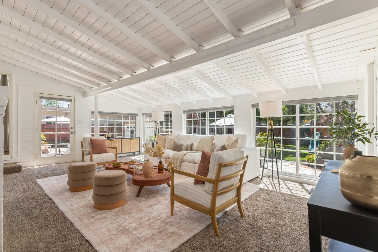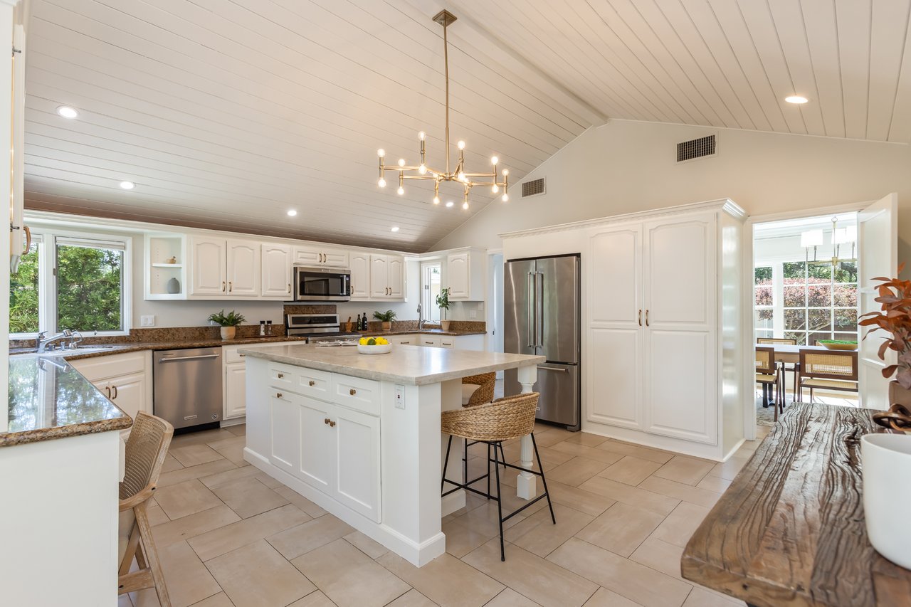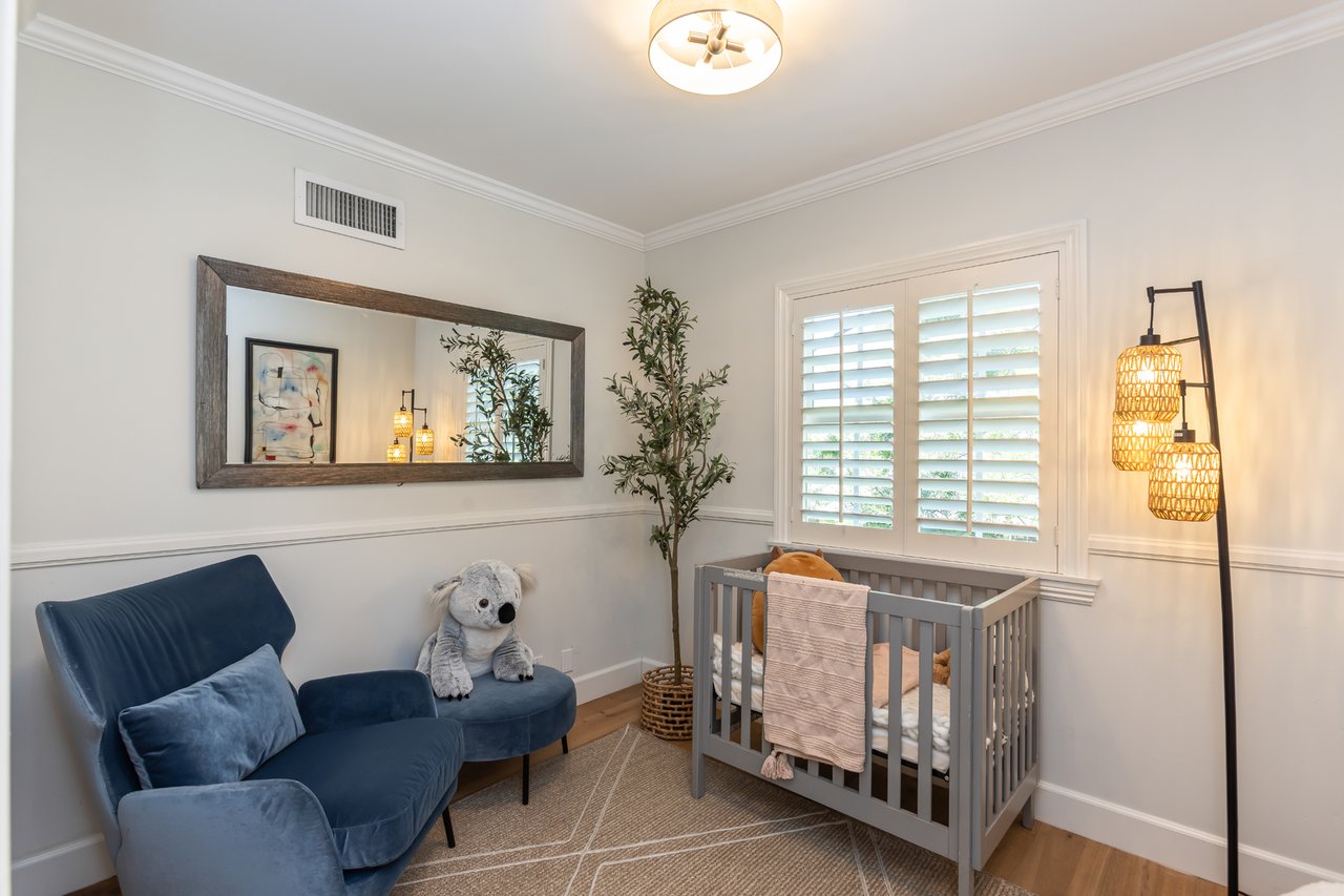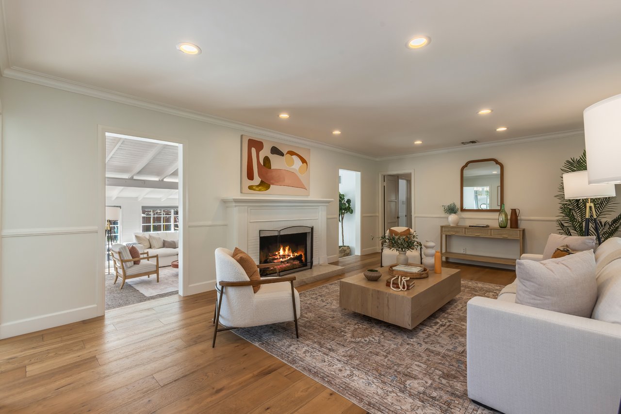 Like a page from a storybook, this traditional home greets you with timeless charm. Shaded canopy trees with an endearing swing, a floral-lined brick walkway, and a quintessential front porch create a first impression that is both warm and unforgettable. Inside, the living room captures peaceful views of the front yard, complemented by French oak wide-plank floors and a fireplace with a wooden mantel and leathered quartz hearth that anchors the space with comfort. Thoughtfully arranged living areas create a natural flow while maintaining a graceful sense of separation between rooms. Soaring vaulted ceilings with exposed beams highlight the bright kitchen, a natural gathering place offering abundant cabinetry, generous counter space, a utility sink, and an oversized leathered quartz island with bar seating, ideal for everyday living and hosting friends and family. Just beyond, a private bedroom wing hosts three well-appointed bedrooms and a shared bath with a glass-enclosed shower and separate tub. The spacious primary suite features French doors that open directly to the patio, where a new spa and tranquil backyard setting create a peaceful retreat. Tucked beneath the closet lies a delightful surprise: a wine cellar designed to house 175 bottles, quietly awaiting its next collection. Completing the suite, the primary bath includes a double vanity, jetted tub, separate shower, and built-in cabinetry. Framed by abundant windows, a gas fireplace and seamless access to the backyard, the sunken family room provides a comfortable space to gather and unwind. Outdoors, a fully fenced private backyard offers multiple seating areas, mature landscaping, fruit trees, and a children's play structure creating a charming setting for classic California afternoons. Versatility continues with a detached Bonus Room (additional 320 SF) featuring new French Doors with sidelights, wood-like flooring, new mini-split A/C unit and projector, well suited for a game room, home office, gym, or creative flex space. In the garage, built-in Craftsman cabinetry, a workshop counter, and durable drainage flooring tiles create a well-equipped space for projects and hobbies. Additional highlights include double-pane windows and recessed lighting throughout, central air and heat, an individual laundry room, convenient powder room, and EV plug. Located within the award-winning La Canada School District and just minutes from the heart of town, 358 San Juan is ready to welcome its next chapter.